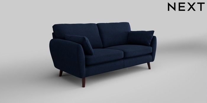 6.12.1 Buy Wilson 3 Seater Small Sofa Luxe Chenille Navy Blue Retro Tapered - Dark Brown from the Next UK online shop Click here to use our accessible website