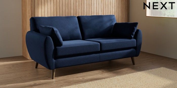 7.3.1 Buy Wilson 3 Seater Small Sofa Luxe Chenille Navy Blue Retro Tapered - Mid from the Next UK online shop