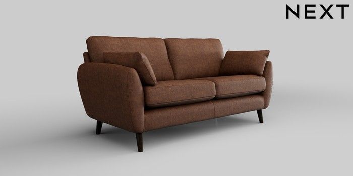 6.12.1 Buy Wilson 3 Seater Small Sofa Monza Faux Leather Easy Clean Chestnut Brown Retro Tapered - Dark from the Next UK online shop Click here to use our accessible website