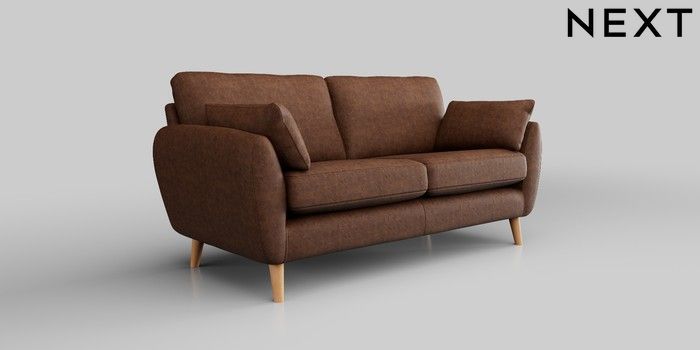 6.12.1 Buy Wilson 3 Seater Small Sofa Monza Faux Leather Easy Clean Chestnut Brown Retro Tapered - Light from the Next UK online shop Click here to use our accessible website