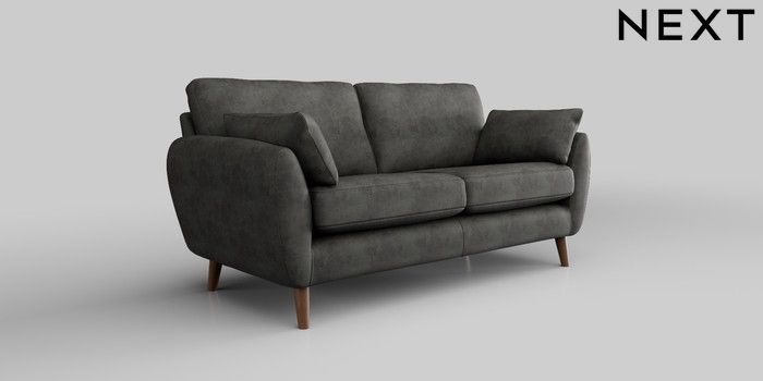 6.12.1 Buy Wilson 3 Seater Small Sofa Monza Faux Leather Easy Clean Dark Grey Retro Tapered - Mid from the Next UK online shop Click here to use our accessible website