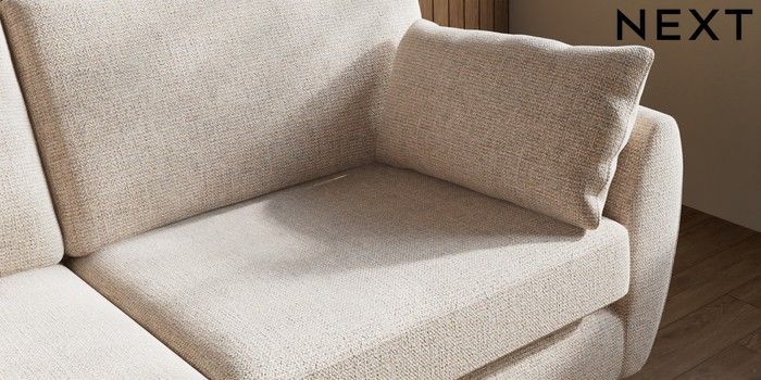 7.3.1 Buy Wilson 3 Seater Small Sofa Multi Weave Mid Natural Metal Tapered - Chrome from the Next UK online shop