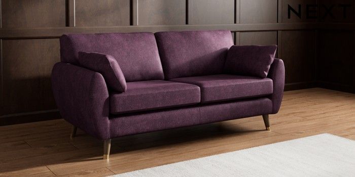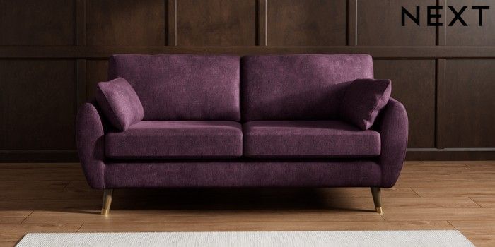 7.3.1 Buy Wilson 3 Seater Small Sofa Plush Chenille Dark Plum Purple Low Retro Tapered Metal Cap - Mid from the Next UK online shop