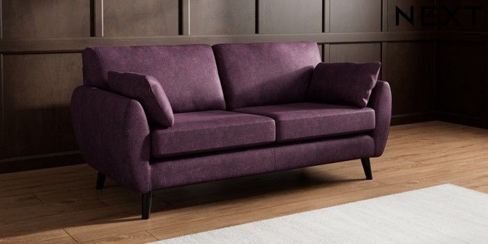 7.3.1 Buy Wilson 3 Seater Small Sofa Plush Chenille Dark Plum Purple Retro Tapered - Dark from the Next UK online shop