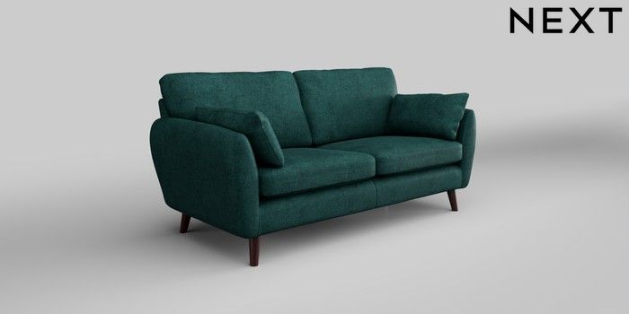 6.12.1 Buy Wilson 3 Seater Small Sofa Plush Chenille Dark Teal Green Retro Tapered - Dark Brown from the Next UK online shop Click here to use our accessible website