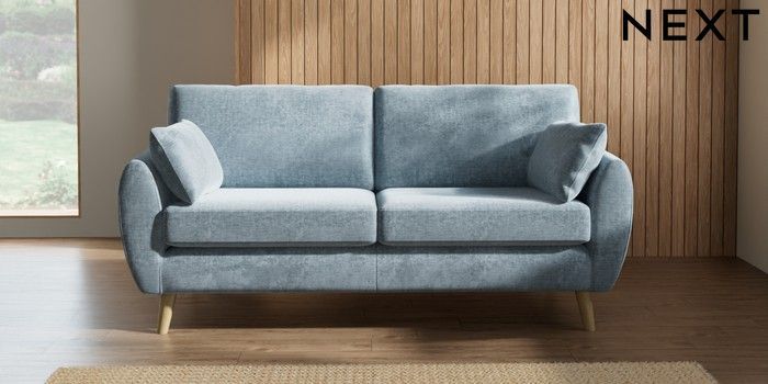 7.2.6 Buy Wilson 3 Seater Small Sofa Plush Chenille Light Blue Retro Tapered - Light from the Next UK online shop Click here to use our accessible website