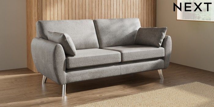 7.3.1 Buy Wilson 3 Seater Small Sofa Plush Chenille Light Grey Metal Tapered - Chrome from the Next UK online shop