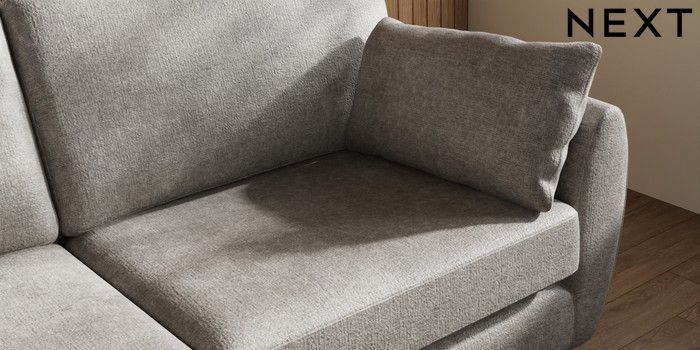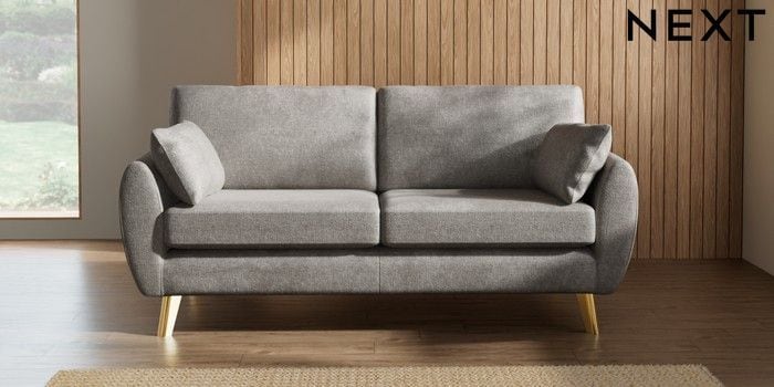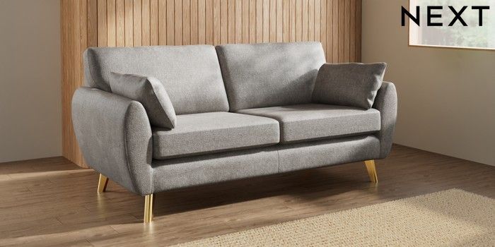 7.3.1 Buy Wilson 3 Seater Small Sofa Plush Chenille Light Grey Metal Tapered - Gold from the Next UK online shop
