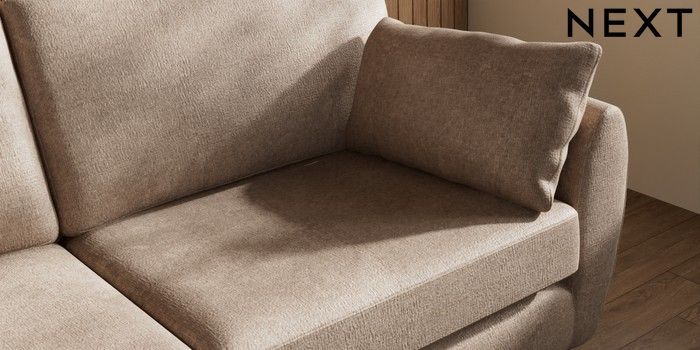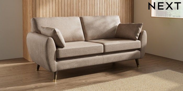 7.3.1 Buy Wilson 3 Seater Small Sofa Plush Chenille Mid Natural Low Retro Tapered Metal Cap - Mid from the Next UK online shop Click here to use our accessible website