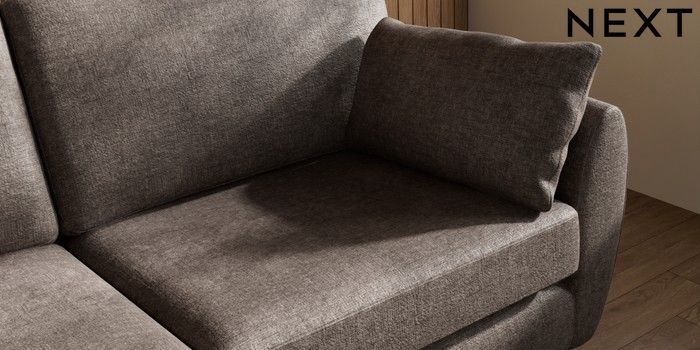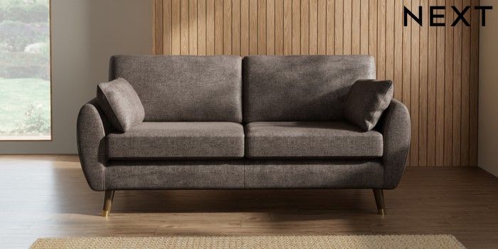 7.3.1 Buy Wilson 3 Seater Small Sofa Plush Chenille Mink Brown Low Retro Tapered Metal Cap - Mid from the Next UK online shop