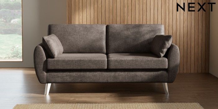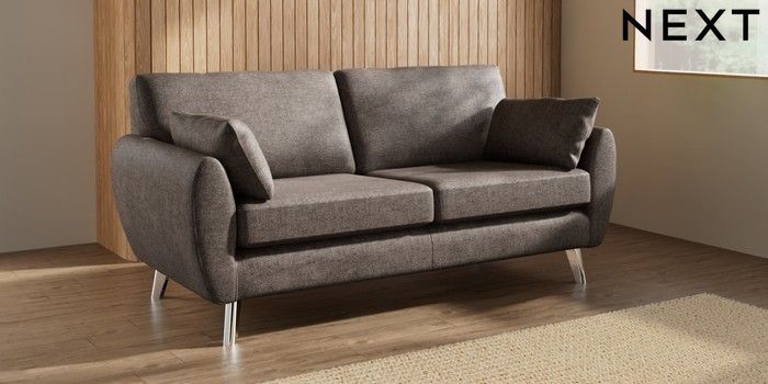 7.3.1 Buy Wilson 3 Seater Small Sofa Plush Chenille Mink Brown Metal Tapered - Chrome from the Next UK online shop