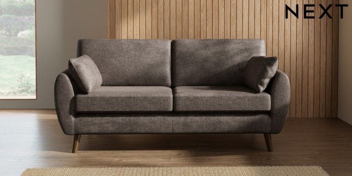 7.2.10 Buy Wilson 3 Seater Small Sofa Plush Chenille Mink Brown Retro Tapered - Mid from the Next UK online shop Click here to use our accessible website