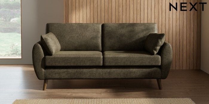 7.2.10 Buy Wilson 3 Seater Small Sofa Plush Chenille Moss Green Retro Tapered - Mid from the Next UK online shop Click here to use our accessible website