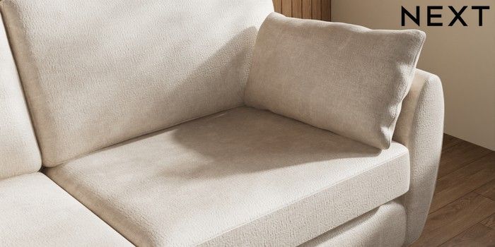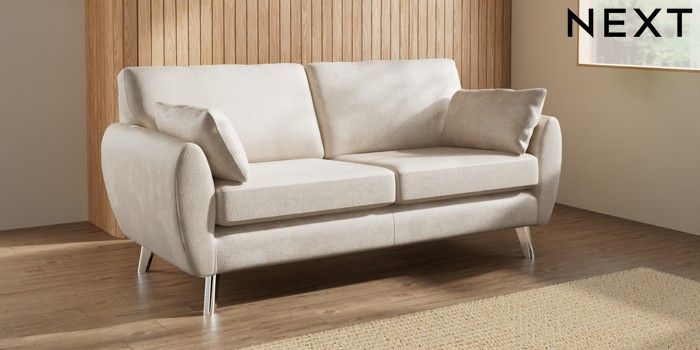 7.3.1 Buy Wilson 3 Seater Small Sofa Plush Chenille Oyster Metal Tapered - Chrome from the Next UK online shop