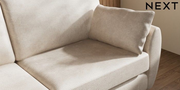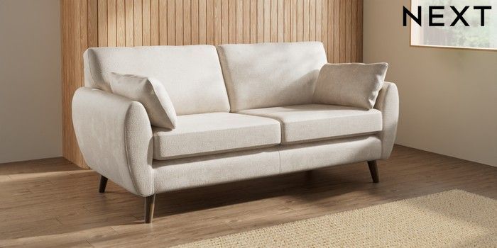 7.3.1 Buy Wilson 3 Seater Small Sofa Plush Chenille Oyster Retro Tapered - Mid from the Next UK online shop