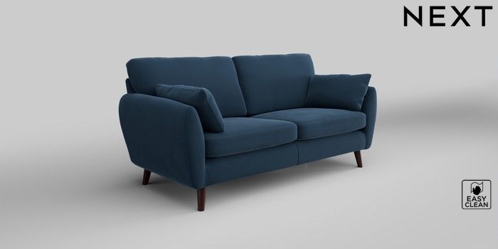 6.12.1 Buy Wilson 3 Seater Small Sofa Plush Velvet Easy Clean Airforce Blue Retro Tapered - Dark Brown from the Next UK online shop Click here to use our accessible website