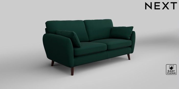 6.12.1 Buy Wilson 3 Seater Small Sofa Plush Velvet Easy Clean Bottle Green Retro Tapered - Dark Brown from the Next UK online shop Click here to use our accessible website