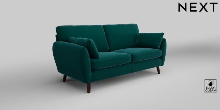 6.12.1 Buy Wilson 3 Seater Small Sofa Plush Velvet Easy Clean Juniper Green Retro Tapered - Dark Brown from the Next UK online shop Click here to use our accessible website