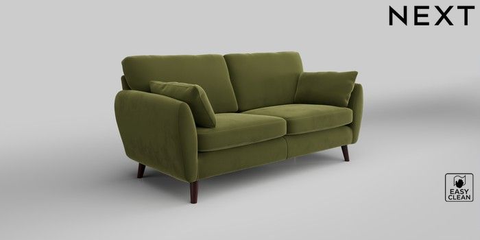6.12.1 Buy Wilson 3 Seater Small Sofa Plush Velvet Easy Clean Mid Olive Green Retro Tapered - Dark Brown from the Next UK online shop Click here to use our accessible website