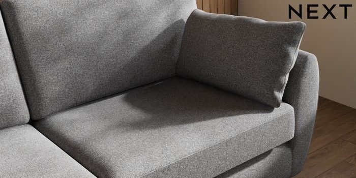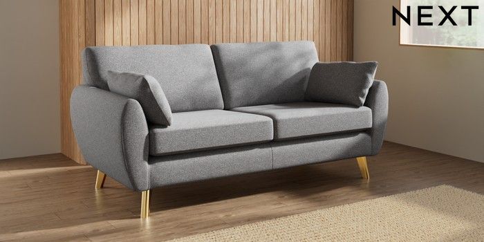 7.3.1 Buy Wilson 3 Seater Small Sofa Studio Chenille Mid Grey Metal Tapered - Gold from the Next UK online shop