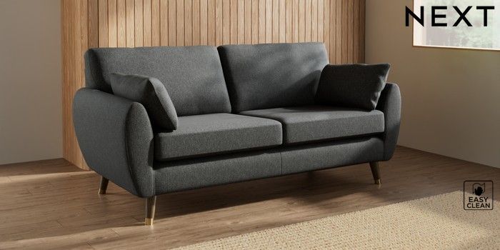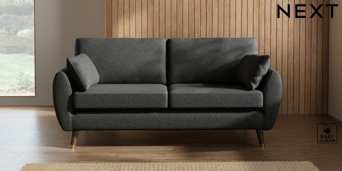 7.3.1 Buy Wilson 3 Seater Small Sofa Tweedy Blend Easy Clean Charcoal Grey Low Retro Tapered Metal Cap - Mid from the Next UK online shop Click here to use our accessible website