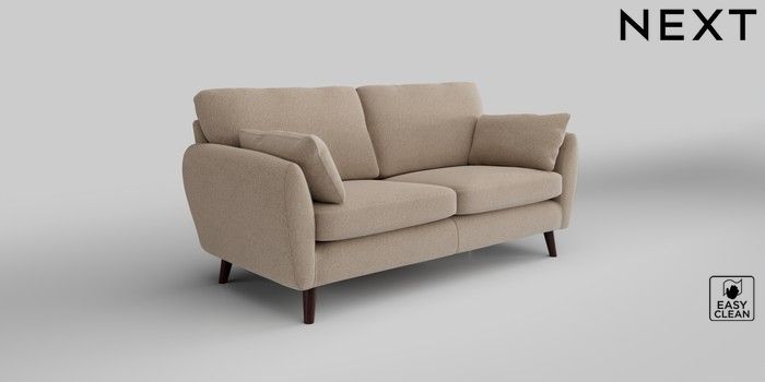 6.12.1 Buy Wilson 3 Seater Small Sofa Tweedy Blend Easy Clean Light Dove Natural Retro Tapered - Dark Brown from the Next UK online shop Click here to use our accessible website