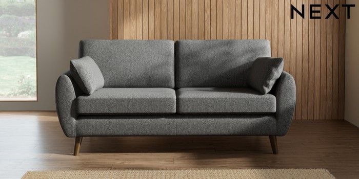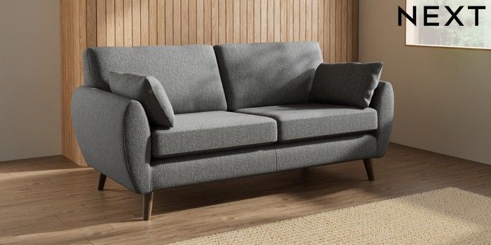 7.3.1 Buy Wilson 3 Seater Small Sofa Tweedy Chenille Dark Grey Retro Tapered - Mid from the Next UK online shop