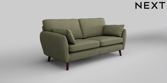 6.12.1 Buy Wilson 3 Seater Small Sofa Tweedy Chenille Mid Moss Green Retro Tapered - Dark Brown from the Next UK online shop Click here to use our accessible website