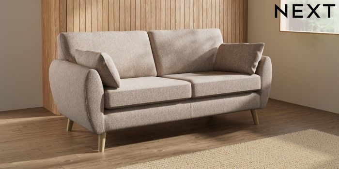 7.3.1 Buy Wilson 3 Seater Small Sofa Tweedy Chenille Mid Natural Retro Tapered - Light from the Next UK online shop
