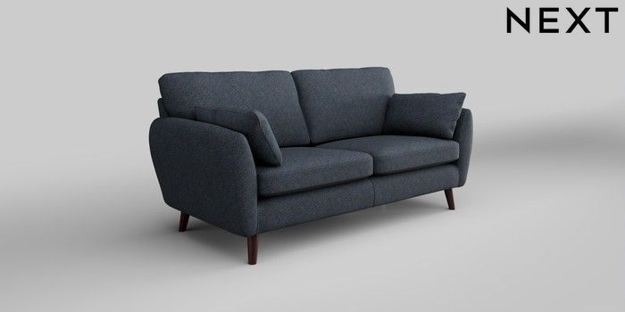 6.12.1 Buy Wilson 3 Seater Small Sofa Tweedy Chenille Navy Blue Retro Tapered - Dark Brown from the Next UK online shop Click here to use our accessible website