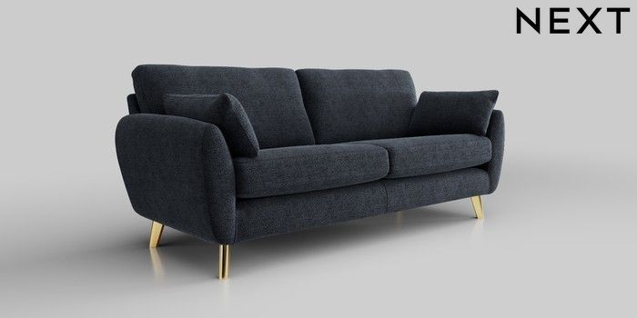 6.12.1 Buy Wilson 3 Seater Sofa Boucle Chenille Dark Slate Blue Metal Tapered - Gold from the Next UK online shop Click here to use our accessible website