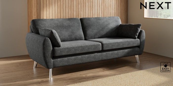 7.3.1 Buy Wilson 3 Seater Sofa Boucle Weave Easy Clean Charcoal Grey Metal Tapered - Chrome from the Next UK online shop