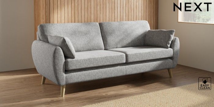 7.3.1 Buy Wilson 3 Seater Sofa Chunky Boucle Easy Clean Light Grey Retro Tapered - Light from the Next UK online shop