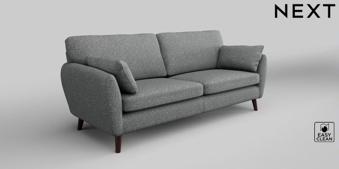 6.12.1 Buy Wilson 3 Seater Sofa Chunky Boucle Easy Clean Mid Grey Retro Tapered - Dark Brown from the Next UK online shop Click here to use our accessible website