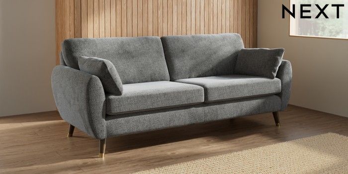 7.3.1 Buy Wilson 3 Seater Sofa Chunky Chenille Dark Grey Low Retro Tapered Metal Cap - Mid from the Next UK online shop