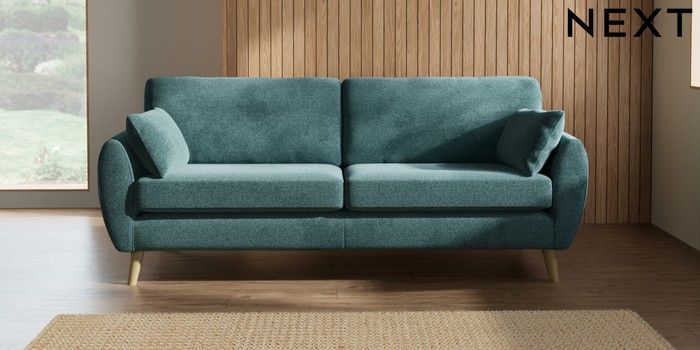 7.3.1 Buy Wilson 3 Seater Sofa Chunky Chenille Mid Teal Green Retro Tapered - Light from the Next UK online shop