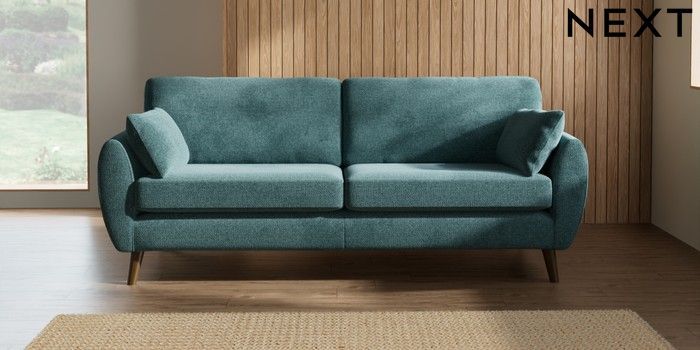 7.3.1 Buy Wilson 3 Seater Sofa Chunky Chenille Mid Teal Green Retro Tapered - Mid from the Next UK online shop