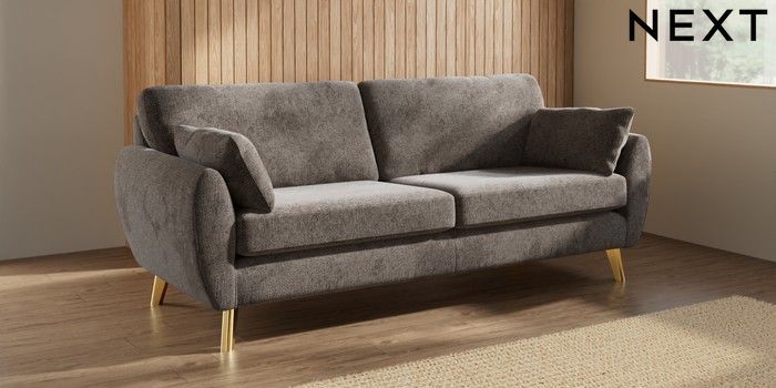 7.3.1 Buy Wilson 3 Seater Sofa Chunky Chenille Mink Brown Metal Tapered - Gold from the Next UK online shop