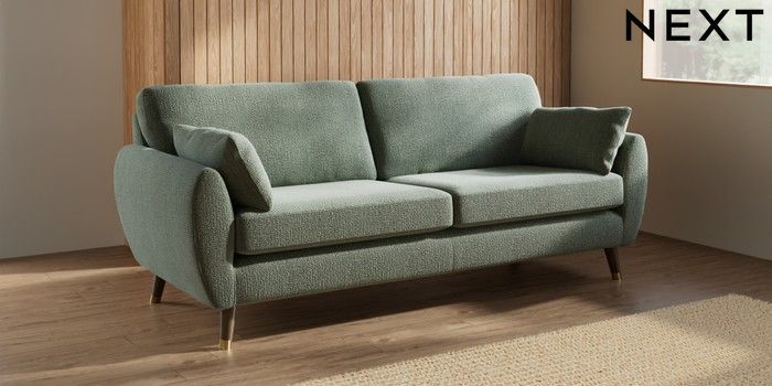 7.3.1 Buy Wilson 3 Seater Sofa Chunky Texture Mid Forest Green Low Retro Tapered Metal Cap - Mid from the Next UK online shop Click here to use our accessible website