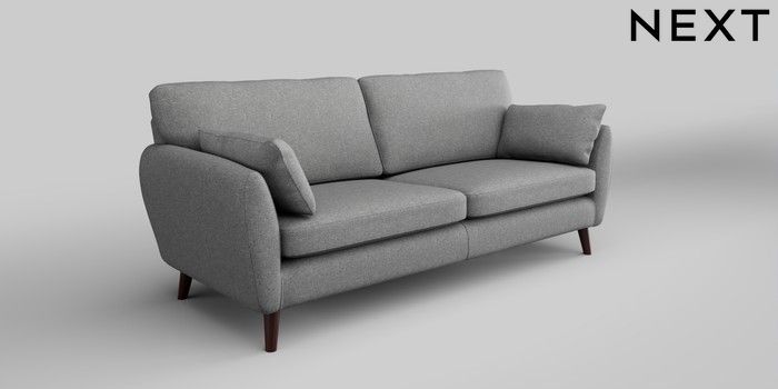 6.12.1 Buy Wilson 3 Seater Sofa Chunky Weave Mid Grey Retro Tapered - Dark Brown from the Next UK online shop Click here to use our accessible website