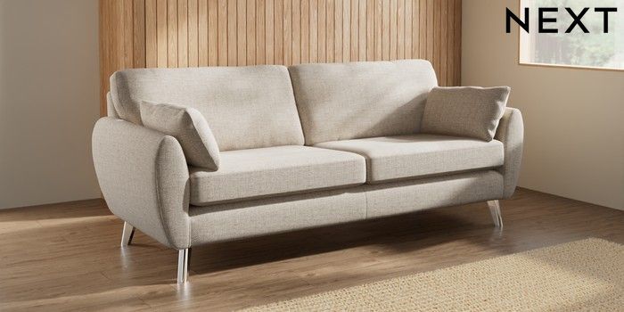 7.3.1 Buy Wilson 3 Seater Sofa Chunky Weave Mid Natural Metal Tapered - Chrome from the Next UK online shop