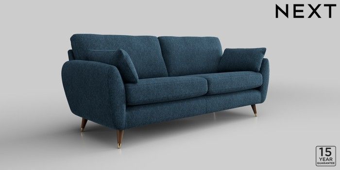 6.12.1 Buy Wilson 3 Seater Sofa Cotswold Chenille Dark Blue Low Retro Tapered Metal Cap - Mid from the Next UK online shop Click here to use our accessible website