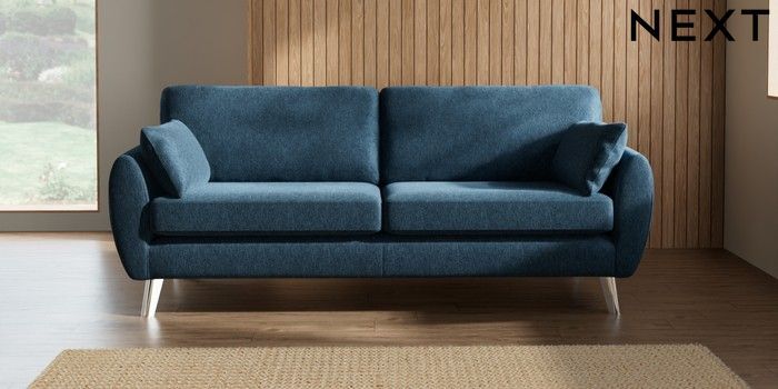 7.3.1 Buy Wilson 3 Seater Sofa Cotswold Chenille Dark Blue Metal Tapered - Chrome from the Next UK online shop Click here to use our accessible website