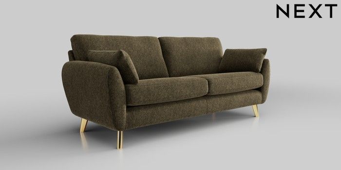 6.12.1 Buy Wilson 3 Seater Sofa Cotswold Chenille Dark Green Metal Tapered - Gold from the Next UK online shop Click here to use our accessible website