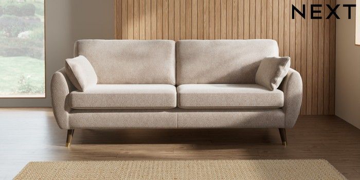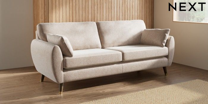 7.3.1 Buy Wilson 3 Seater Sofa Cotswold Chenille Light Natural Low Retro Tapered Metal Cap - Mid from the Next UK online shop