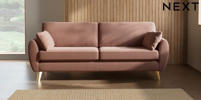 7.3.1 Buy Wilson 3 Seater Sofa Relaxed Linen Look Light Rust Brown Metal Tapered - Gold from the Next UK online shop Click here to use our accessible website