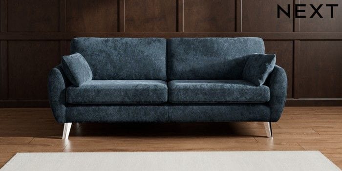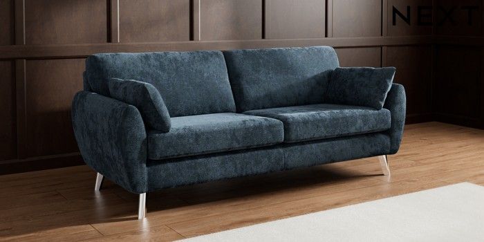 7.3.1 Buy Wilson 3 Seater Sofa Distressed Velour Midnight Blue Metal Tapered - Chrome from the Next UK online shop