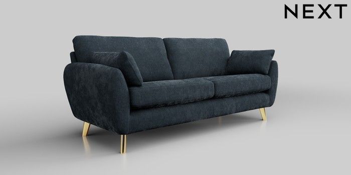 6.12.1 Buy Wilson 3 Seater Sofa Distressed Velour Midnight Blue Metal Tapered - Gold from the Next UK online shop Click here to use our accessible website