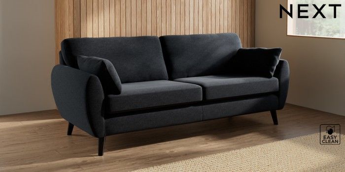 7.3.1 Buy Wilson 3 Seater Sofa Fine Chenille Easy Clean Black Retro Tapered - Dark from the Next UK online shop