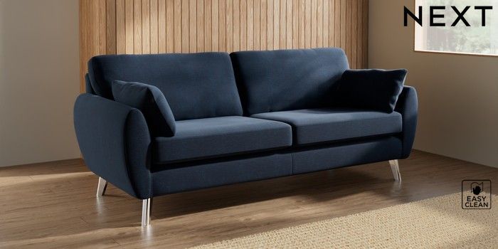 7.3.1 Buy Wilson 3 Seater Sofa Fine Chenille Easy Clean Dark Navy Blue Metal Tapered - Chrome from the Next UK online shop Click here to use our accessible website